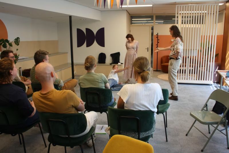 Ook volgden de trainees een theatertraining. Door middel van speelse oefeningen en interactieve spellen stapten de trainees uit hun comfortzone. Dit gaf hen de gelegenheid om hun rol als docent verder te verkennen en te versterken.